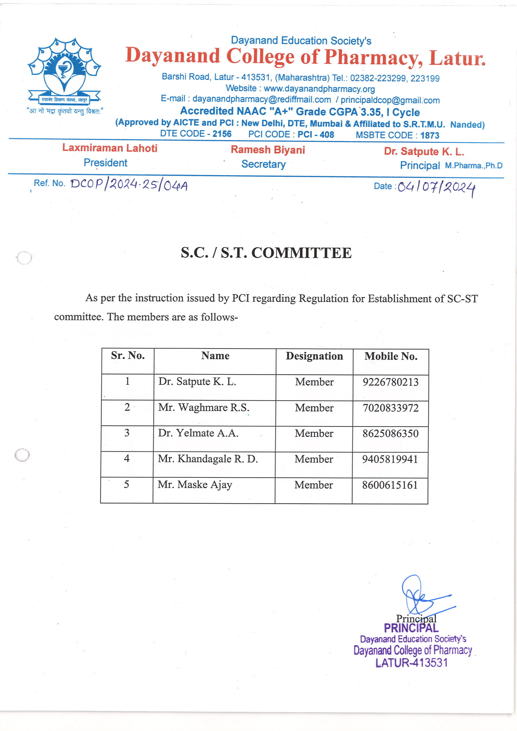 S.C./S.T. Committee 2024-25